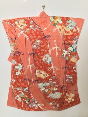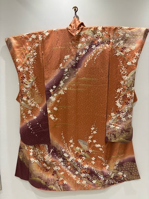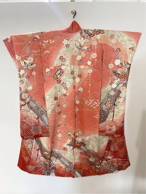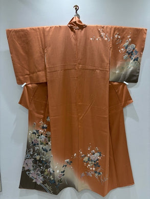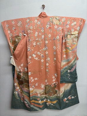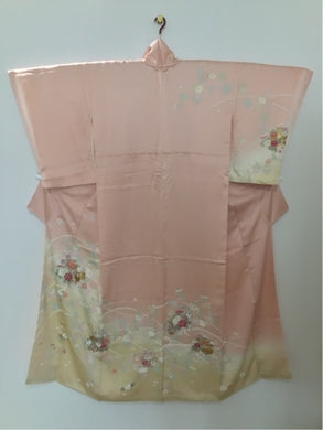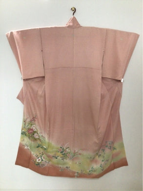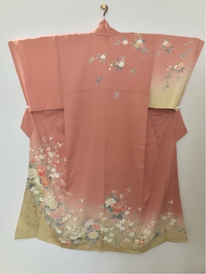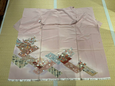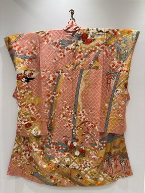 サーモンピンク 菊笹花松文 駒刺繍 金彩[4570191714452]
