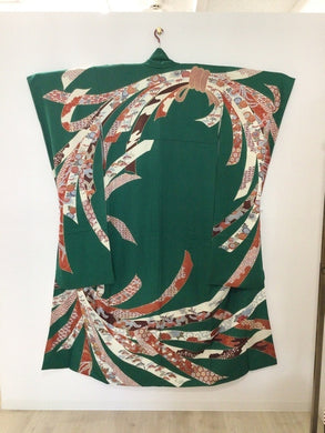 振袖 緑 束ね熨斗 草花 金糸 金彩[4570191712021]