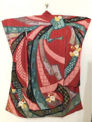 振袖 臙脂色 扇 唐花文 紅葉 梅 [4570191655410]