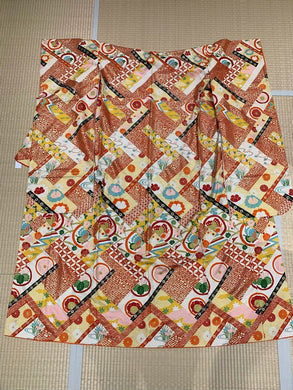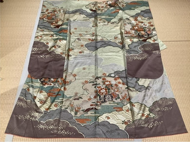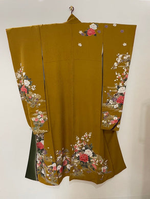 振袖 黄土色 御所車 牡丹 菊 梅 熨斗 [4570191656370]