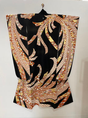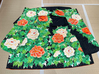 振袖 黒地 オレンジ&ホワイト芍薬 [4570191650163]