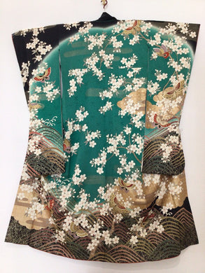 振袖 緑 鴛鴦 草花 金銀彩 ぼかし[4570191712144]
