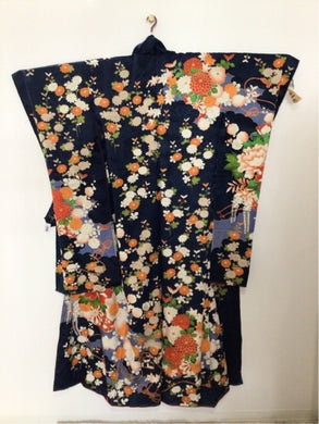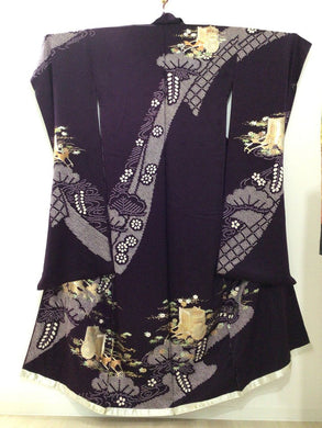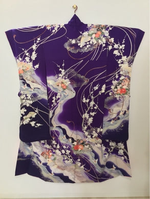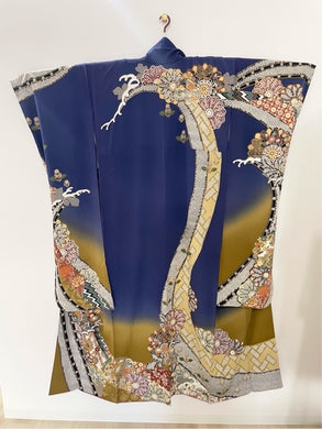 紺 ピンク 立波松竹梅花文 駒刺繍 暈し染め 金彩[4570191714100]