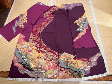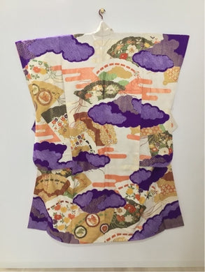 紫 クリーム 桧扇 牡丹 金糸 絞り[4570191711185]