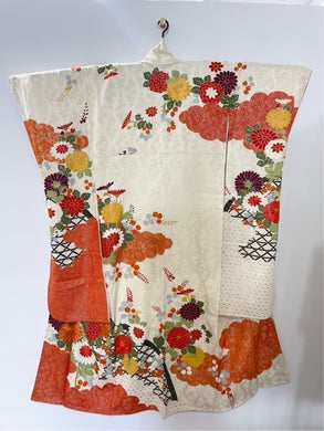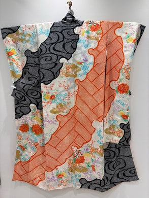 白 黒 オレンジ 牡丹 源氏車 金糸 絞り[4570191713233]