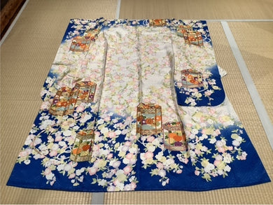 紺色 孔雀 屏風 牡丹 桜 梅 紅葉 金糸 金彩[4570191710461]