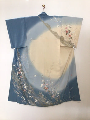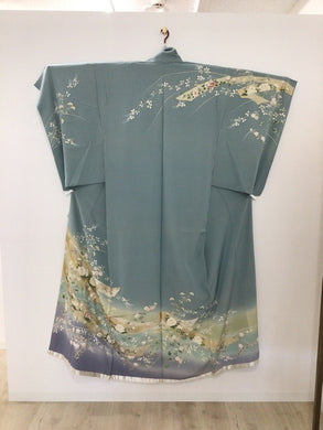 訪問着 青灰色 椿 鶴 金銀彩 ぼかし[4570191712175]