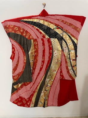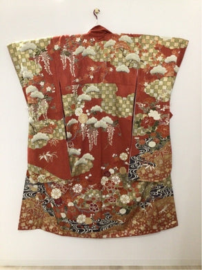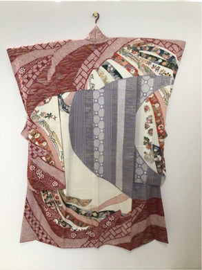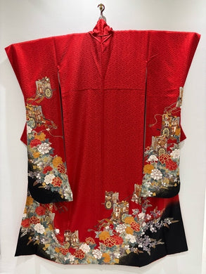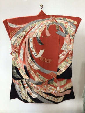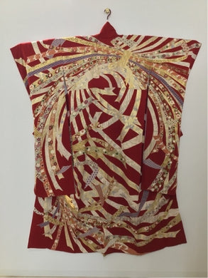 赤 白 紫 花車 雲文 金彩 絞り[4570191713639]