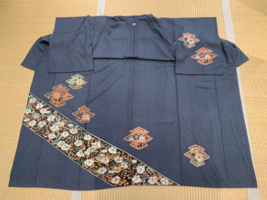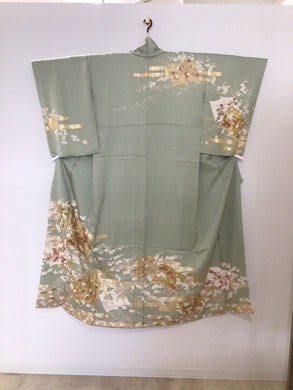 訪問着 青灰色 熨斗 草花 金糸 金彩[4570191712083]