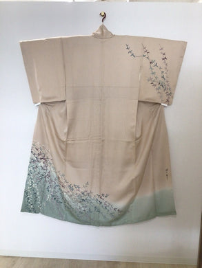 訪問着 ベージュ 二代目清次郎 落款あり 枝葉 裾ぼかし[4570191712120]