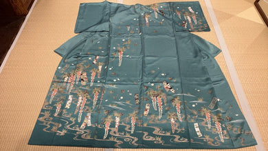 訪問着 ブルーグリーン 青緑 橘 杜若 水辺 [4570191659005]