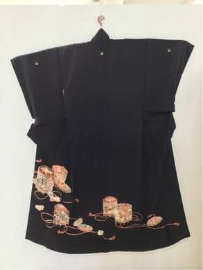 黒留 プレミアム 吉祥貝桶花文 汕頭刺繍 総刺繍 金糸 4570191710393