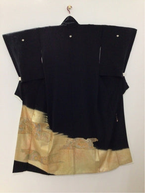 黒留 地紙吉祥花文 暈し染め 金彩 金駒刺繍[4570191712762]