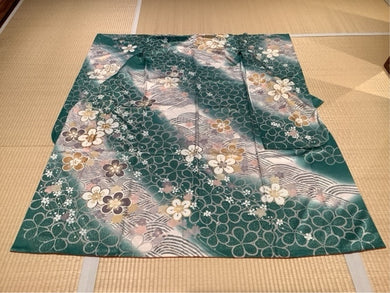 青緑 枝垂桜 蝶 金彩 染め分け[4570191713646]