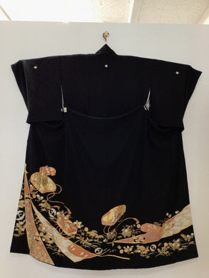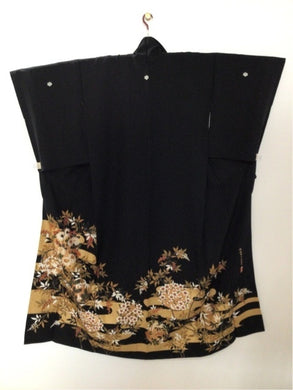 黒留 御所車冊子花文 総刺繍 金彩[4570191713448]