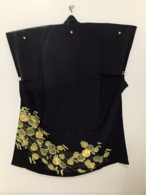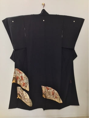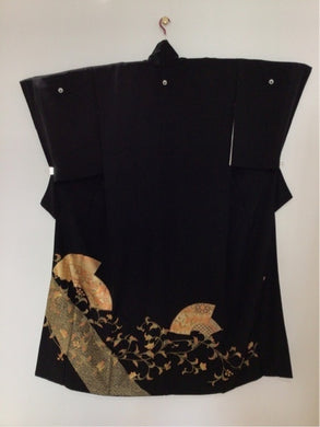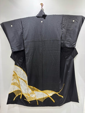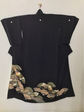 黒留 扇花文 蘇州刺繍 金糸 金銀彩[4570191711604]