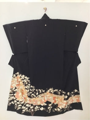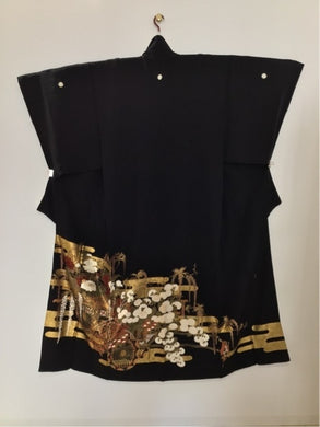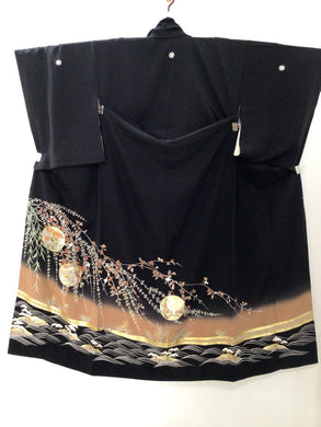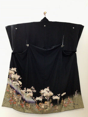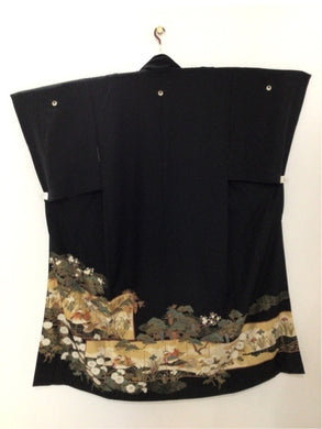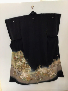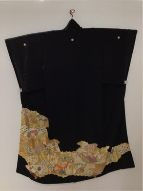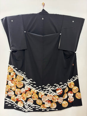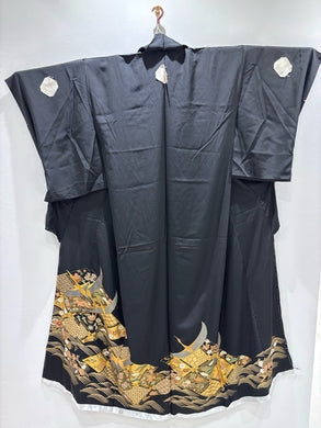 黒留 仮絵羽 飛鶴吉祥花文 駒刺繍 金彩[4570191712991]