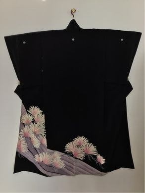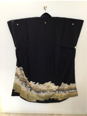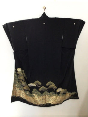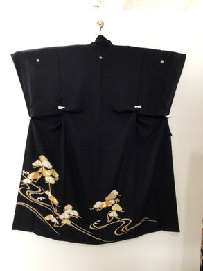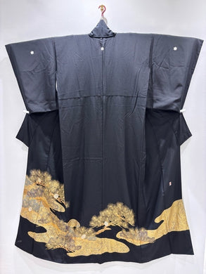 黒留 流水飛鶴雲取り枝松文 駒刺繍 金彩[4570191710768]