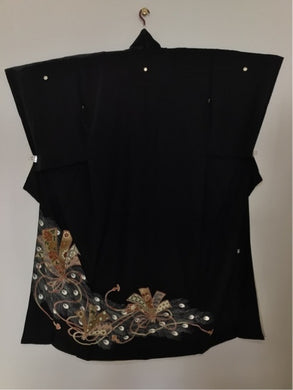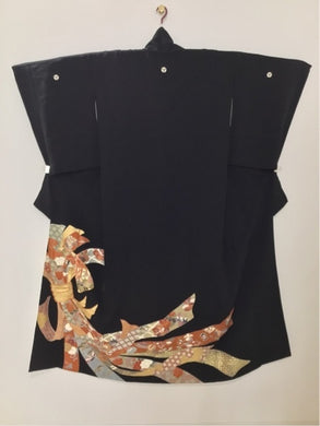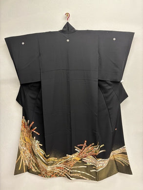 黒留 束ね熨斗鳳凰花文 駒刺繍 金彩[4570191711024]