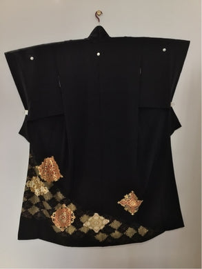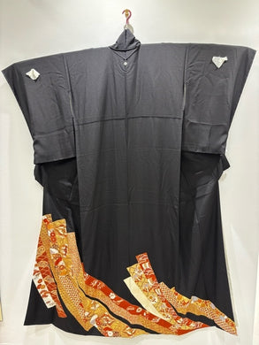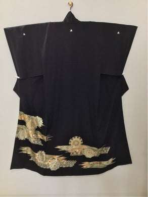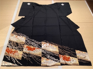 黒留 束ね熨斗花文 宝尽くし 駒刺繍 金彩[4570191712311]
