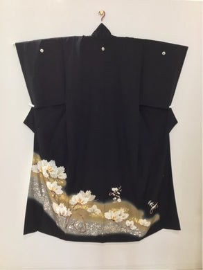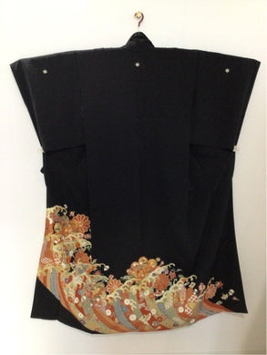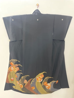 黒留 束ね熨斗吉祥花文 駒刺繍 金彩[4570191713561]